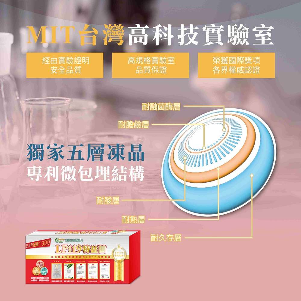 採用專利多層凍晶包覆技術,可維持菌株高度存活率。