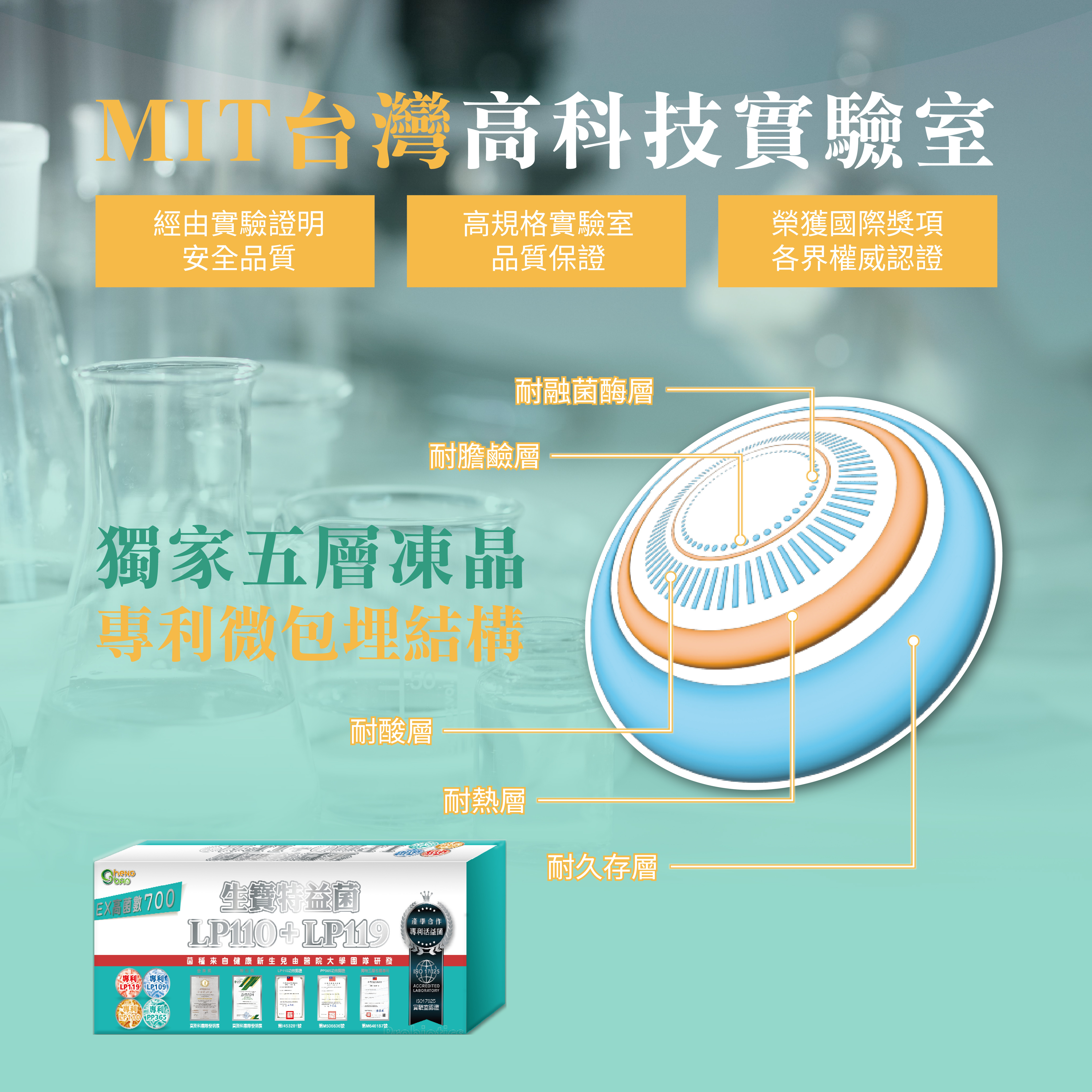 採用專利多層凍晶包覆技術,可維持菌株高度存活率。