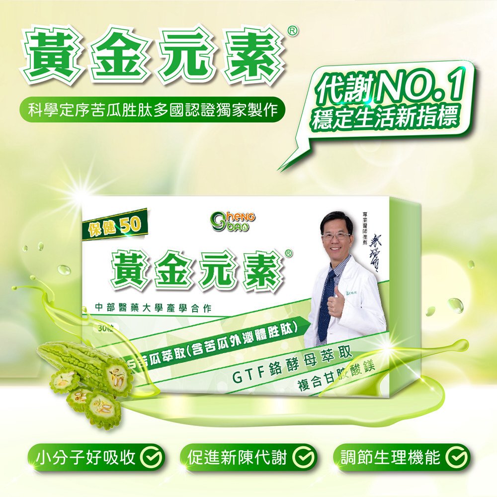 【生寶國際生技】黃金元素50單位-苦瓜胜肽鉻膠囊X3盒-共90粒(30粒/盒)